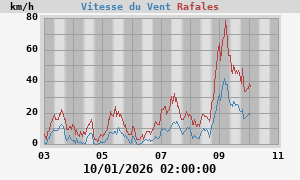 Max cette semaine: 48 km/h à 03:20:00 (vendredi)